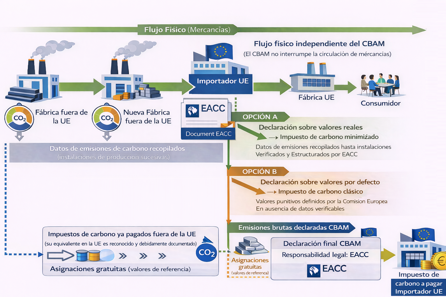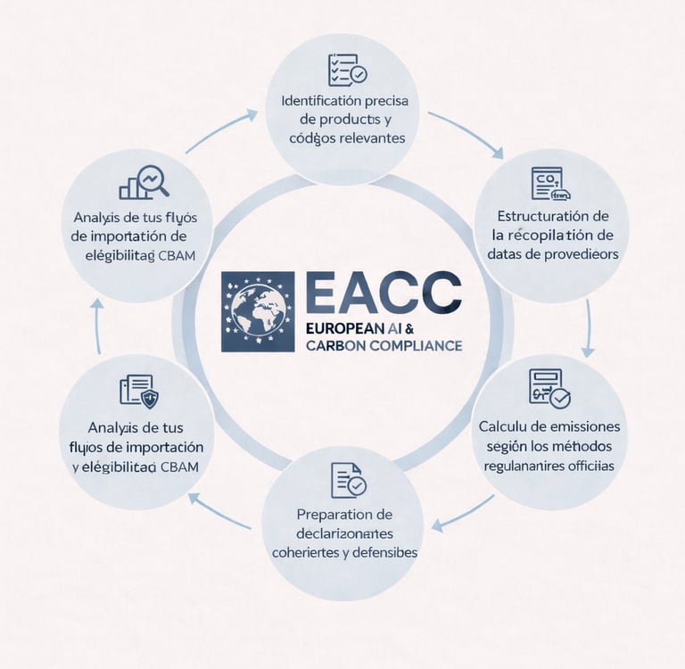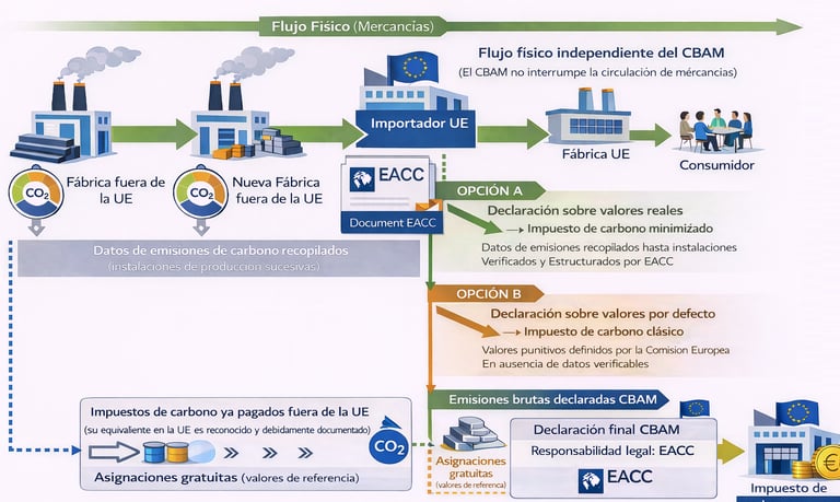 EACC actúa como tercero técnico y metodológico, asegurando la declaración CBAM del importador frente a las autoridades europeas.
